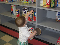 There was also a grocery store (Piggly Wiggly to be exact) and I think Bug spent most of his time in there.  He loves groceries!  They had shopping carts, a cash register, and aprons if you wanted to be a grocery store employee.  I loved that you could “buy” something at the grocery store and walk across the “street” to take it “home” and “cook” it.  :)