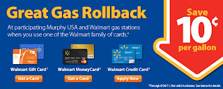 Well, now through 9/30/11 you can save 10c a gallon when you get gas at a participating station using a Walmart gift card, money card or credit card.