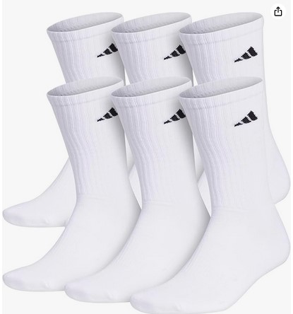 adidas Men’s Athletic Cushioned 6-Pack Crew, Cushioned Crew Socks with Arch Compression for a Secure Fit are around eleven bucks on Amazon (marked down 50% off their list price). It comes out to under $2/pair!