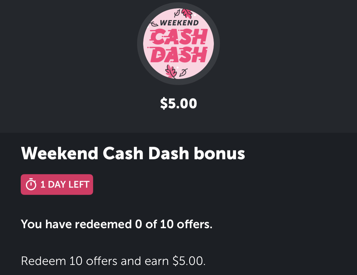 And this weekend, you can earn the Weekend Cash Dash bonus for an addition $5 when you redeem 10 offers.