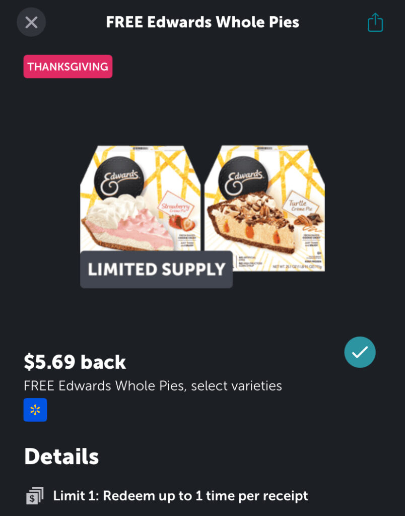 This week’s freebie is a FREE Edwards Whole Pie from Walmart!