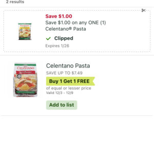 $1.00 off Celentano Pasta coupon in the Publix app